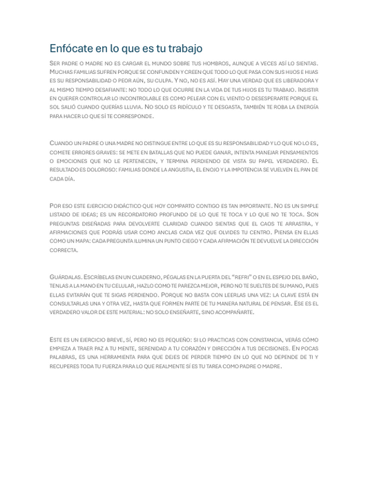 Ejercicio para distinguir lo que es y no tu trabajo como padre/madre